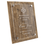 The Barnwood Floating Plaques feature a 3/16" glass or acrylic panel suspended above a rustic barnwood plaque using decorative standoff hardware. Available in 8" x 10", 9" x 12", and 10 1/2" x 13" sizes, these plaques offer ample space for personalization and create a distinctive, eye-catching display for recognizing excellence, milestones, or achievements.